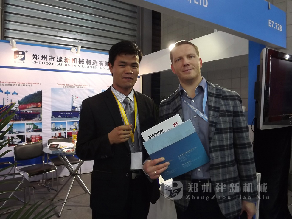 作為國內建筑機械行業里的一支跑軍,鄭州建新機械制造有限公司在2015年上海寶馬機械展銷會上,展示了建新公司大型混凝土攪拌站、穩定土拌和站全套設備,及建新JS系列雙臥軸混凝土攪拌機、PLD砂石配料機、水泥倉等單機設備。